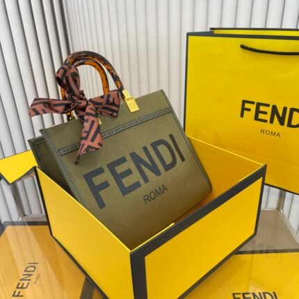 FENDI Tote bag canvas Black/White/Dark Green Size: 25*22cm