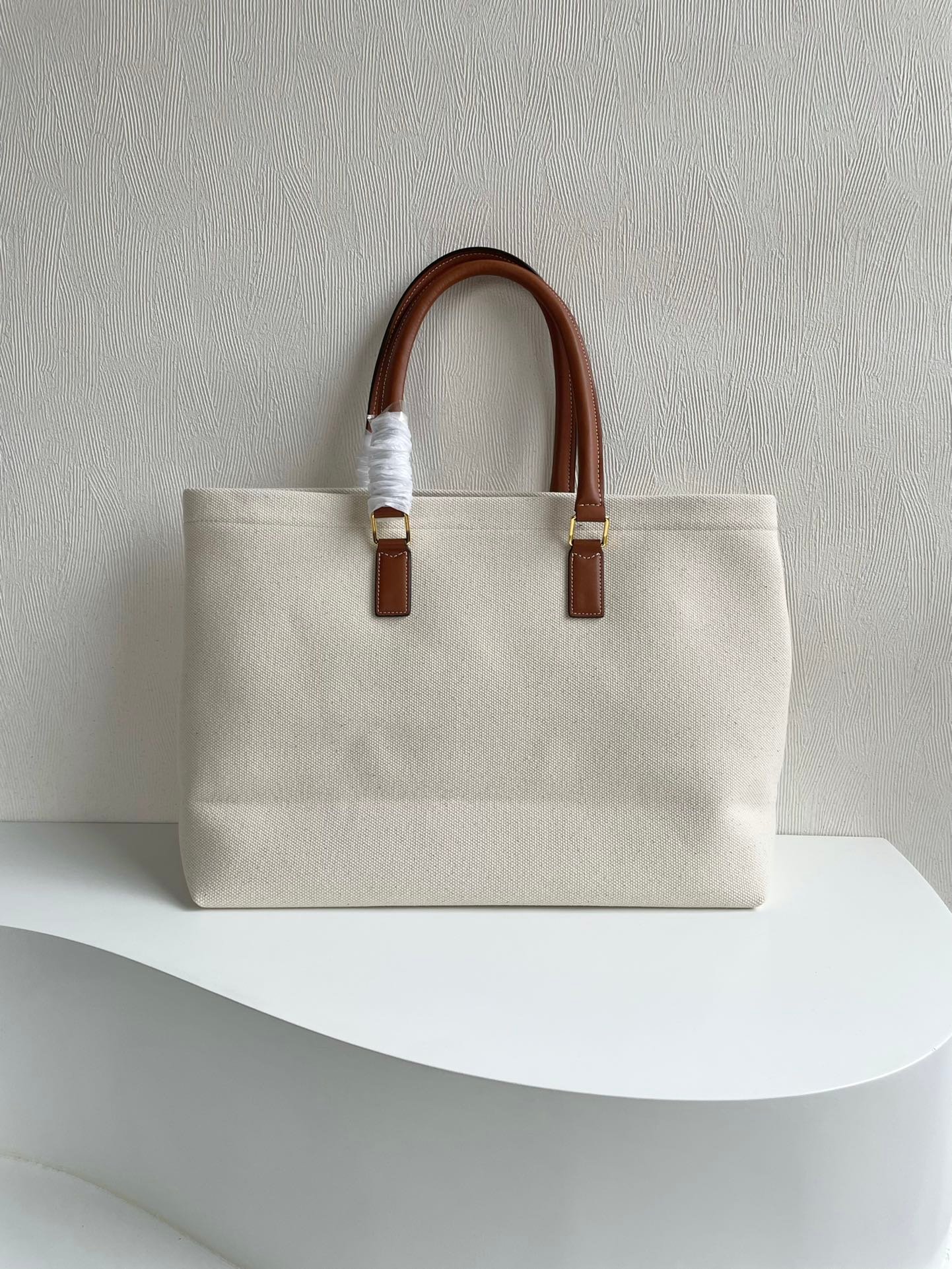CELINE horizontal printed canvas and calfskin handbag white Size: 44*32*16cm