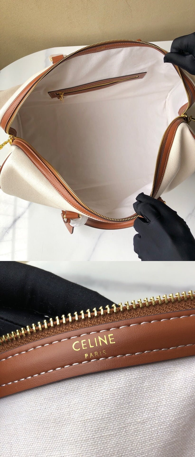 63% coated canvas, 37% calfskin