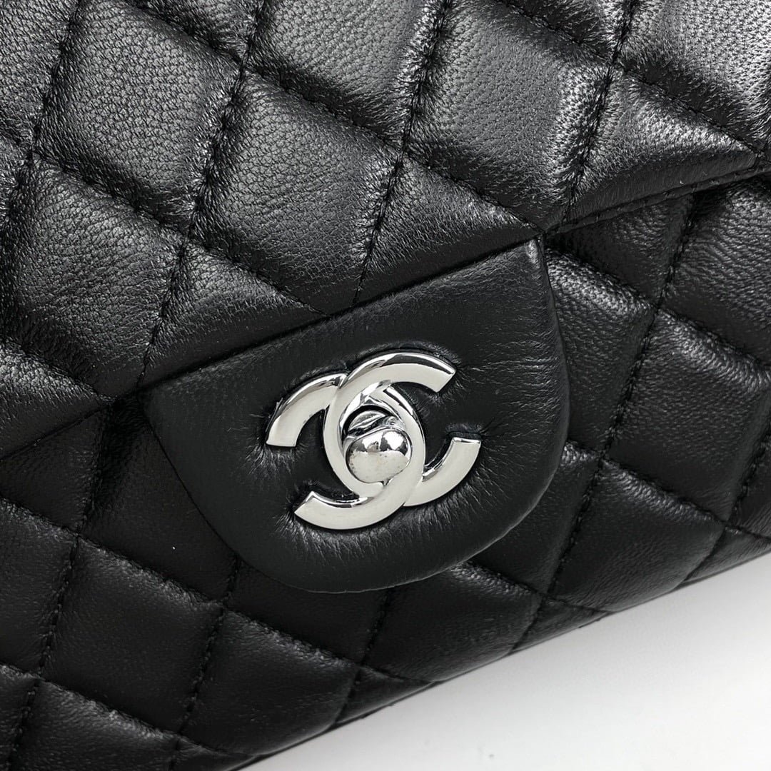 Chanel cf Square Fat 1115 sheepskin leather black
