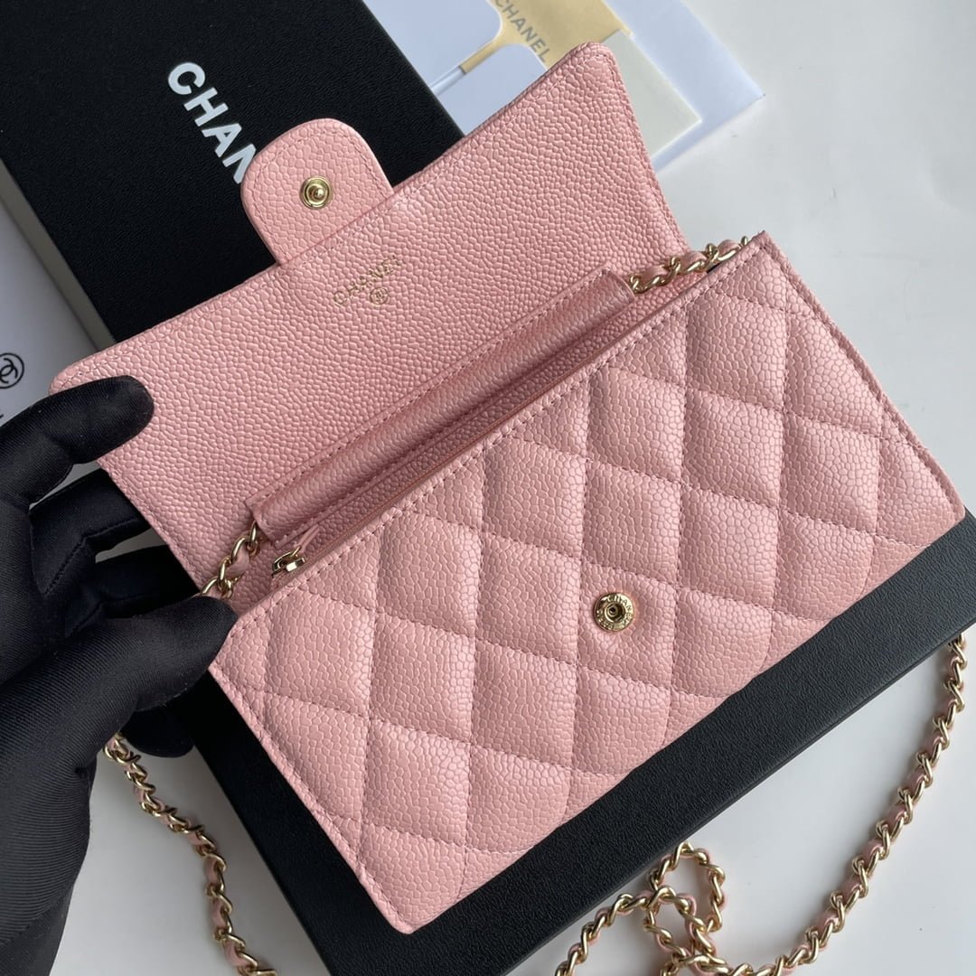 Home BAGS CHANEL Chanel chain crossbody bag Cowhide with diamond lattice caviar Pink A50076 size: 18*10.5*3.5cm
