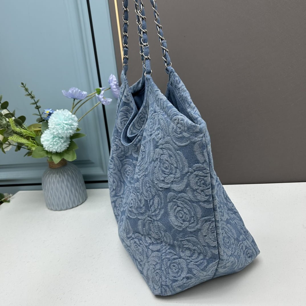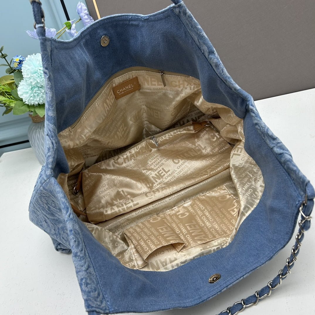 Chanel ramie cotton denim shopping bag beach bag size: 33* 32cm