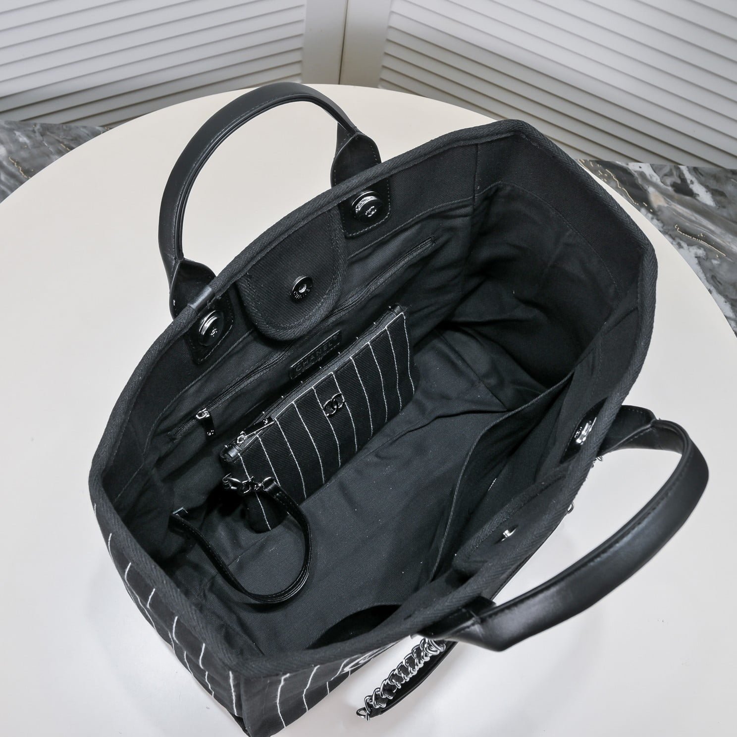 Be the first to review “Chanel new beach bag denim bag Black with little wallet size: 48*38*30*14cm” Cancel reply
