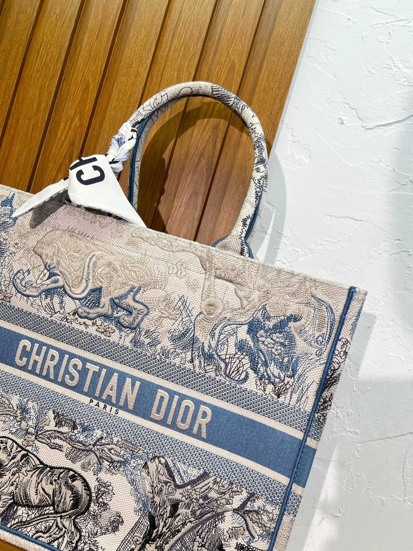 Dior book tote 3D Three-dimensional relief embroidery size: 41cm/36cm