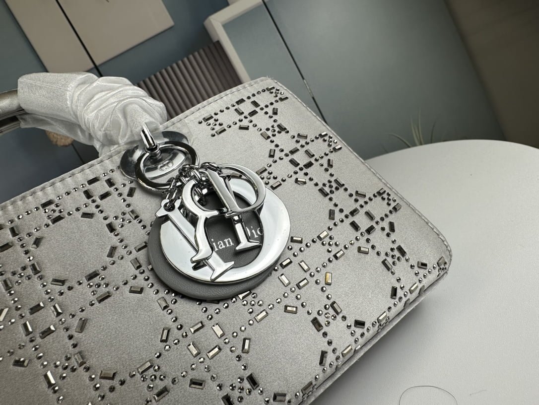 Home BAGS DIOR Dior satin diamond-encrusted Princess Diana bag grey 2320 size: 26*13*6cm