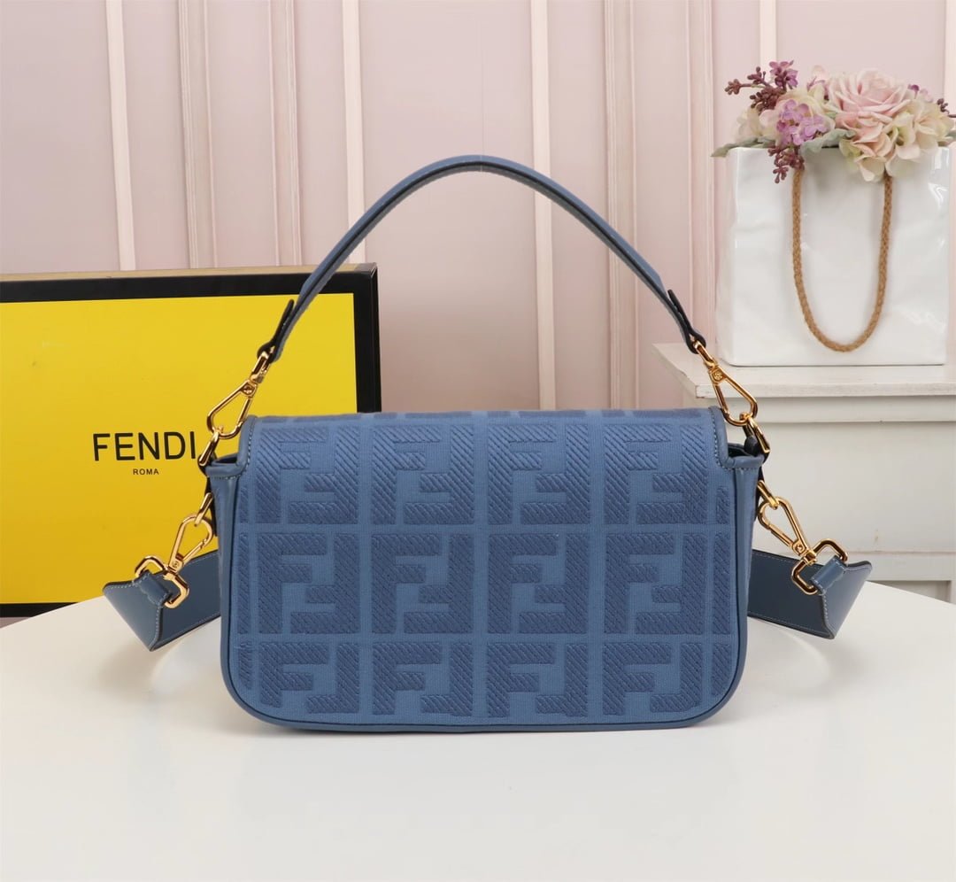 2023 Fendi’s latest baguette bag: very summery; F embroidery colors. This Fendi Baguette is sure to be a trendy item this summer! It looks great on the top; Attendance is also particularly high; It’s absolutely fine for a concave shape. Very lightweight. And its capacity is also very powerful; Easily meet your daily needs. With a short strap and a wide shoulder strap; Can be carried on one shoulder and crossbody. Very versatile. It’s easy to wear no matter what style you have. Carry it and you’ll be the brightest goddess in the crowd. Model F2029 Size 26-5-15CM