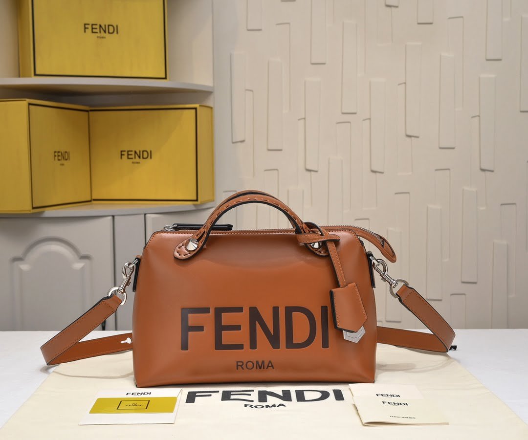 FENDI by the way Boston tote bag 〰️ Italian small ???? leather, simple hot printing lettering pattern, with double handles and long shoulder strap, ???? hand or single shoulder, spacious with a compartment inside. size 28cm~
