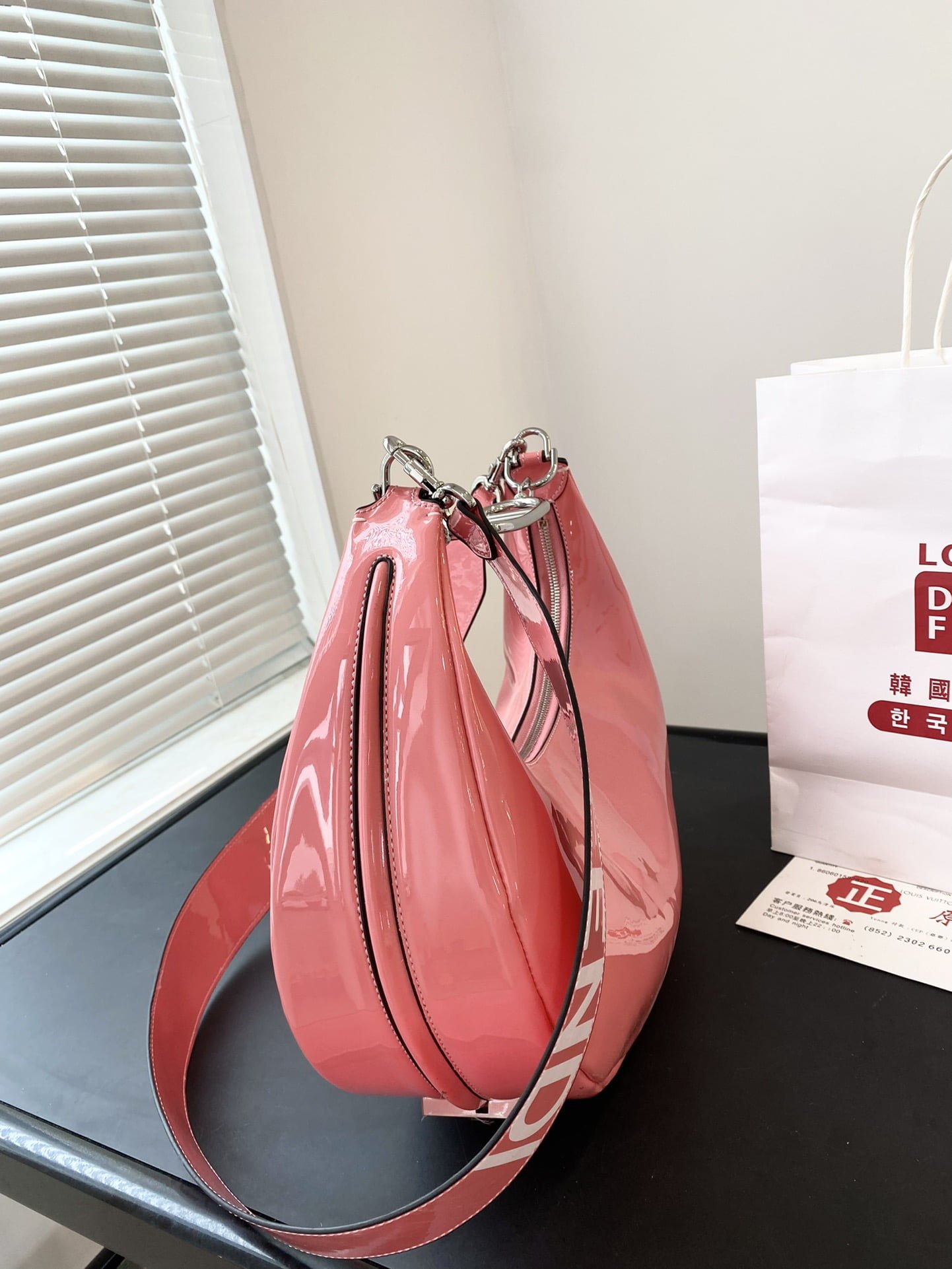 FENDI Patent leather half moon bag Pink Size: 34*16cm