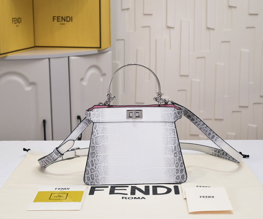 Both compartments are opened and closed with a classic PEEKABOO turn lock.