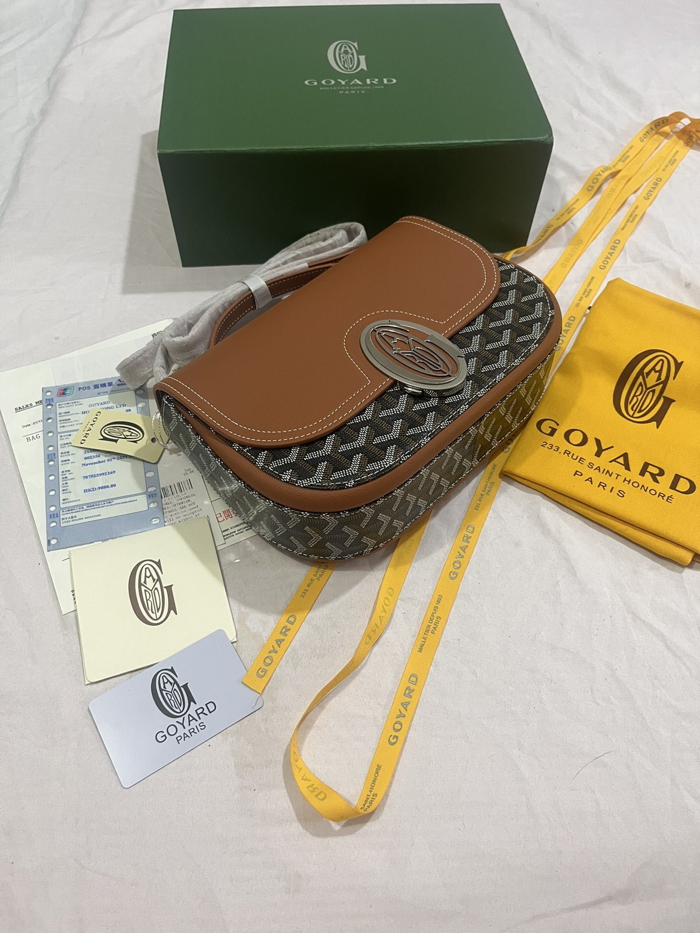 The GOYARD 233 lll retains the signature elements of the classic version, such as the bold metal logo buckle, full-sided leather flap and unique curved shape, while giving the bag a lighter streamlined design and a more modern contemporary style. Adjustable leather shoulder strap can subtly switch between elegant shoulder and fashion crossbody ???? retro elegance and popular sweet cool collision ???? This series 233 named from the Paris century-old store address house number, is a classic book of goyard! Made of a full set of steel hardware ????Goyardine canvas stitching inside and outside the first layer of calfskin ???? Size: 26*18*8cm
