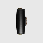 Petite versions of the Gucci Horsebit 1955 add a hybrid twist to the vintage inspired line. Enriched with two different shoulder straps. the black leather mini bag’s character transforms from understated elegance with a tonal leather strap to a strong logo feel thanks to a red and green Web option.