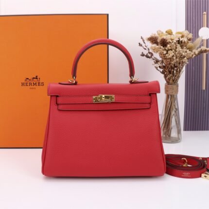 Hermès Kelly Togo Calf Gold hardware Red size: 25cm/28cm