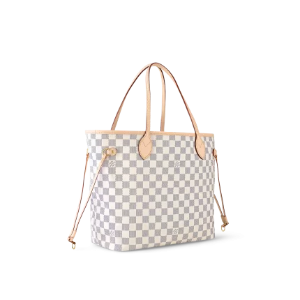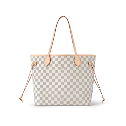 The Neverfull MM tote unites timeless design with heritage details. Made from fresh Damier Azur canvas with natural cowhide trim.