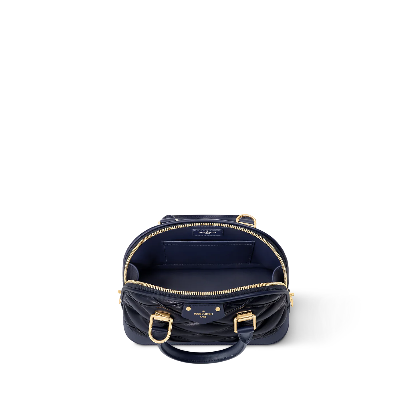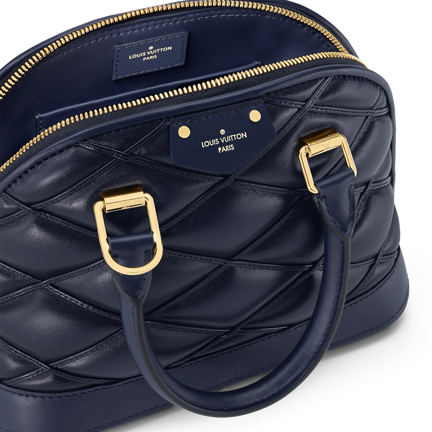 Nicolas Ghesquière constructs the iconic Alma BB handbag in padded lambskin, embellished with a shaded effect. Applied by hand, the toasted aspect brings a modern elegance to the bag’s Art Deco-inspired shape. Two top handles and a removable strap enable a variety of carries. A golden padlock and leather key bell complete the design.