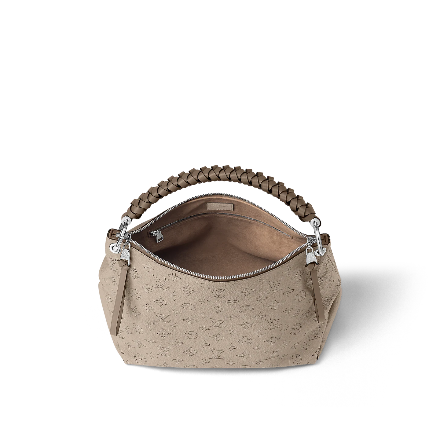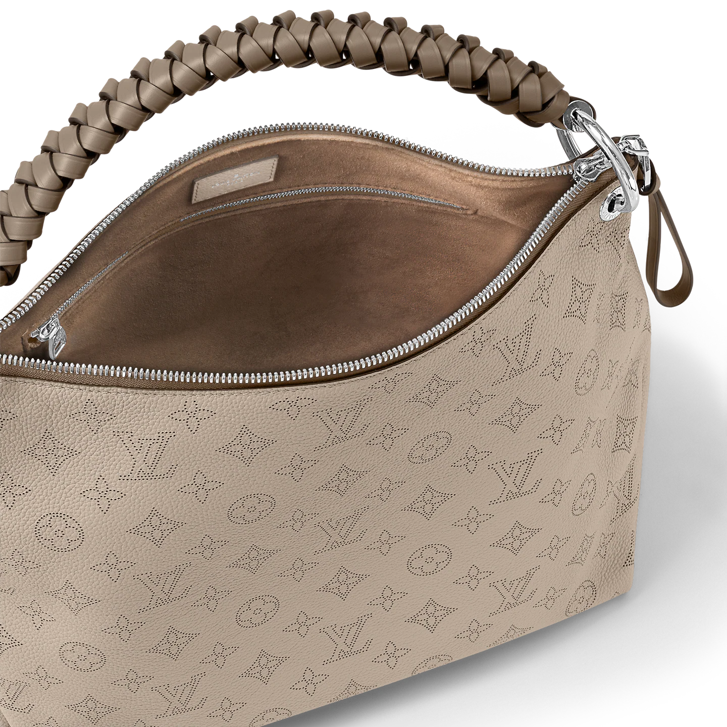 The Beaubourg Hobo MM bag is made from Mahina calf leather perforated with the Monogram pattern. It boasts a stylishly braided-leather top handle. with hand-painted edge-dyeing along the braids. The leather zip pulls and large LV charm sign the bag. A detachable. wide leather strap means that this supple bag feels comfortable against the body.