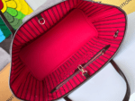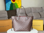 This season’s edition of the beloved Neverfull MM tote features a braided leather strap in tender colors. The trim’s cream and pink tones complement the signature Damier Ebene canvas. a pattern created in 1888 by Georges Vuitton. A versatile carryall. the bag can be either cinched closed with the side laces or left open for a more casual allure.