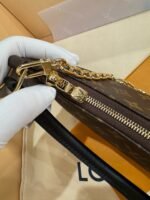 This Catchy PM makes a versatile addition to any handbag collection, celebrating the House’s iconic heritage with its signature Monogram pattern. Crafted from canvas, it is elevated with cowhide trims and features a removable gold-toned chain adorned with a key-shaped charm. Neatly sized to store everyday essentials, it has one handle and a removable shoulder strap to offer versatile carrying options.
