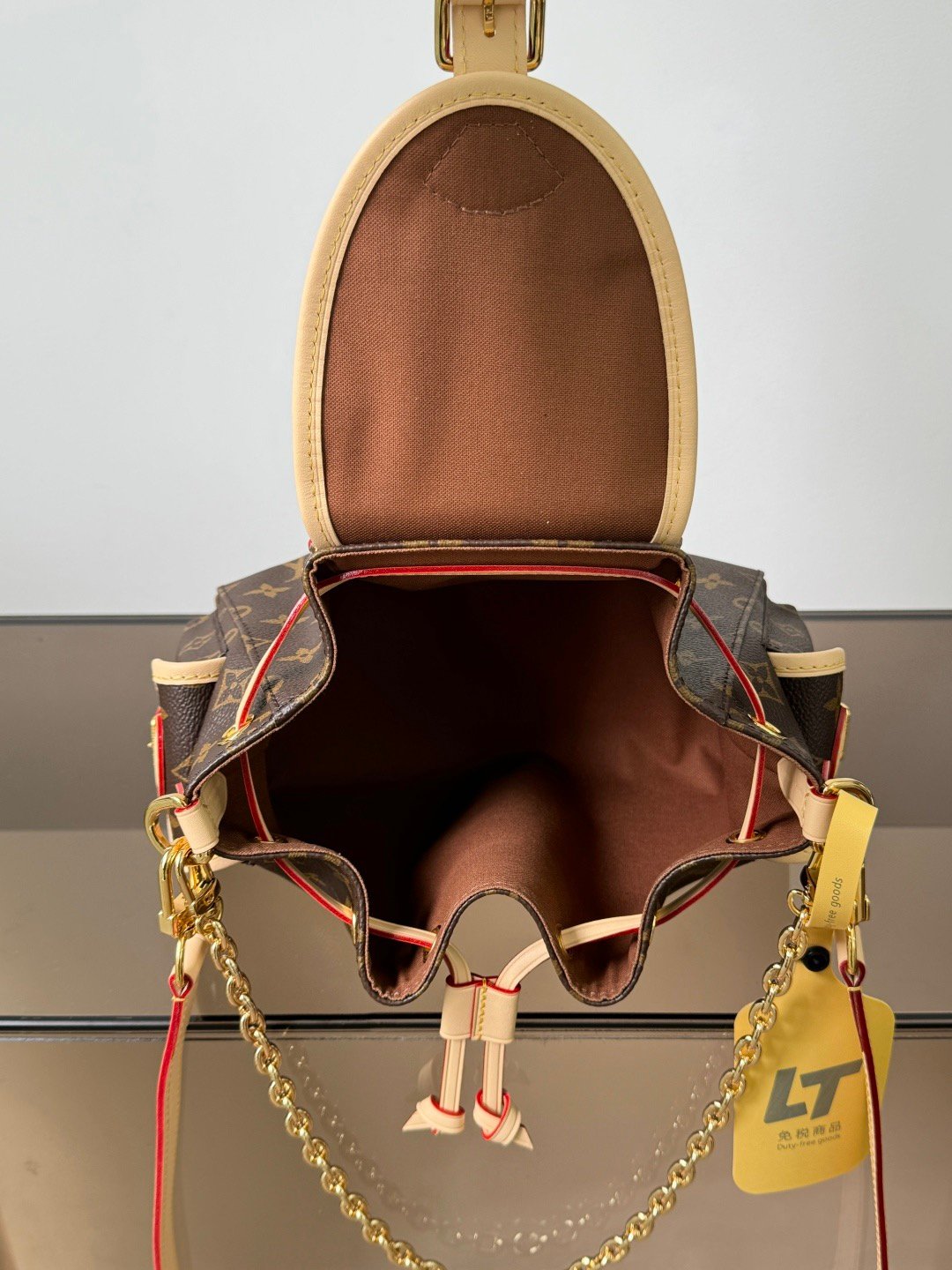 - Gold-toned hardware