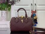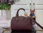 From the Back to School collection, this seasonal edition of the iconic Speedy Bandoulière 20 features the House’s Monogram Empreinte leather in a chic Grenat Red colorway. It is elevated with gold-toned hardware, including a signature padlock, and can be styled multiple ways. The compact design holds everyday essentials, including a pocket-sized book and some makeup items.