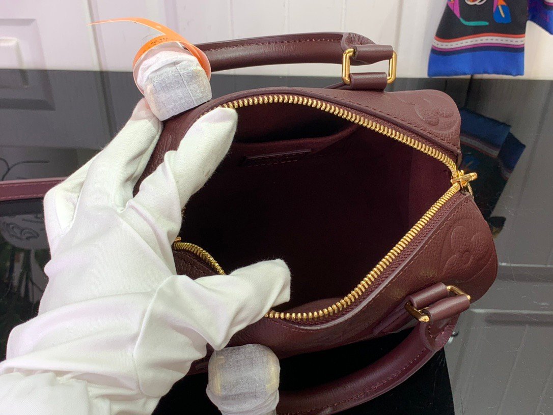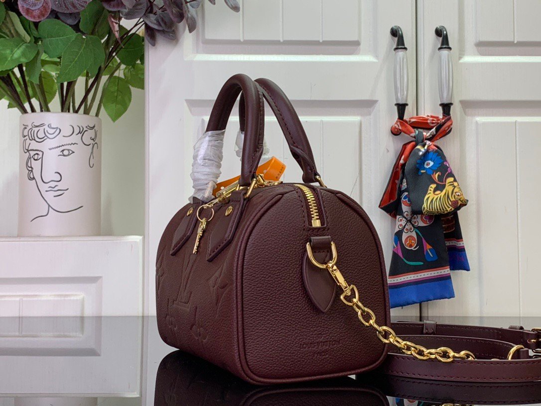 From the Back to School collection, this seasonal edition of the iconic Speedy Bandoulière 20 features the House’s Monogram Empreinte leather in a chic Grenat Red colorway. It is elevated with gold-toned hardware, including a signature padlock, and can be styled multiple ways. The compact design holds everyday essentials, including a pocket-sized book and some makeup items.
