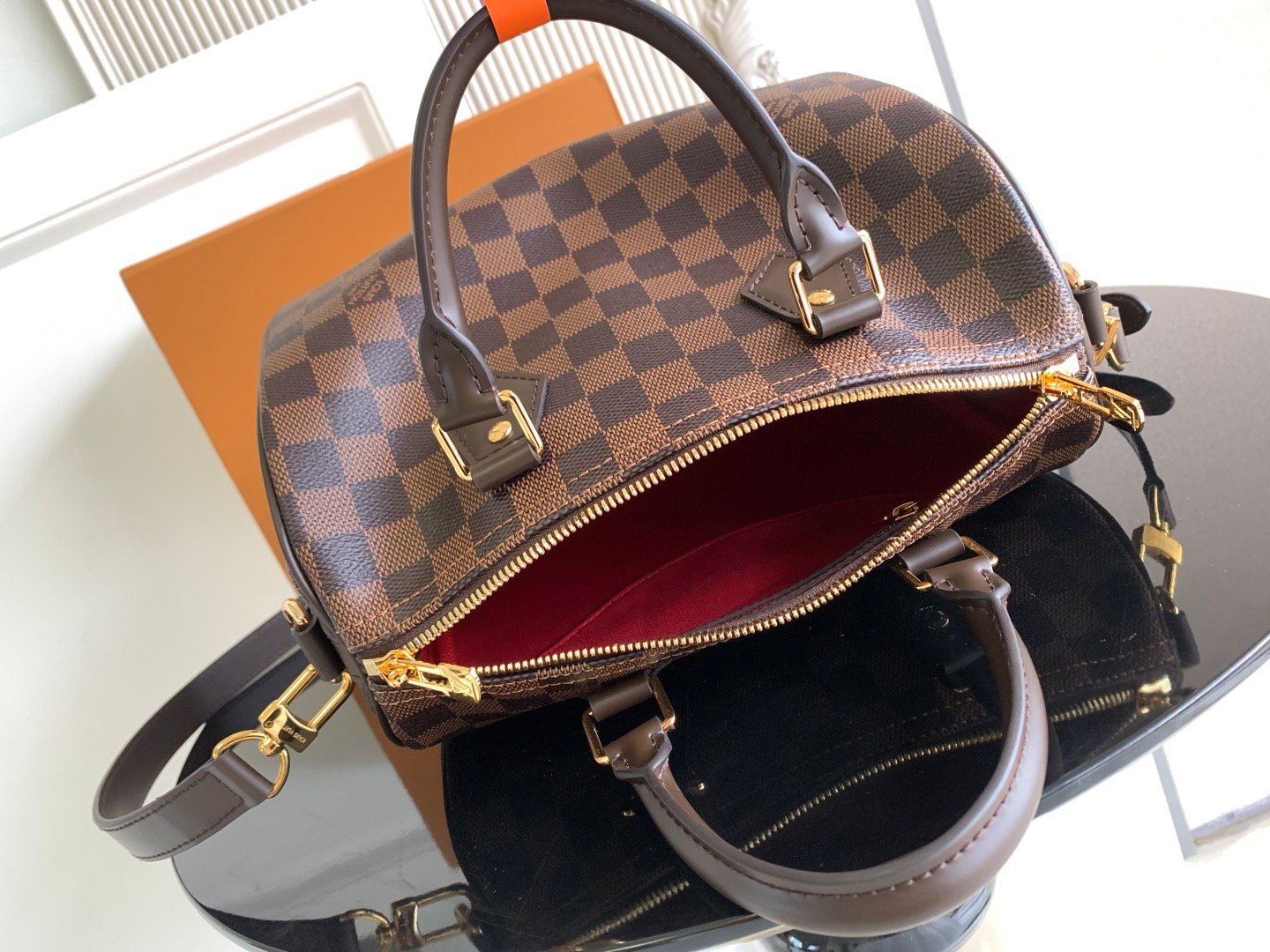 The Speedy Bandoulière 25 in signature Monogram canvas is an ideal city bag for every day. Originally created for travelers in the 1930s – the name refers to the era’s rapid transit – every feature of the Speedy’s design is iconic, from its unmistakable shape to the rolled leather handles, engraved padlock and detachable strap.