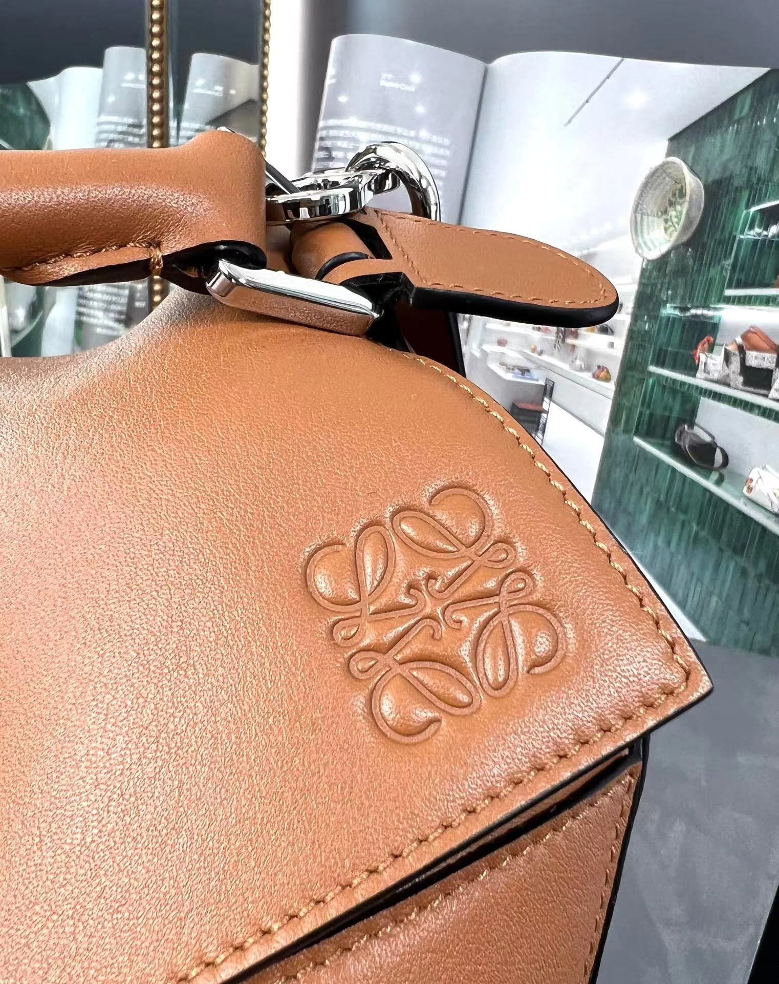 人字纹棉质帆布衬里,带字谜气压装饰、一个内部口袋隔层和一个后拉链口袋