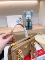 Prada this season a lot of BlingBling, not only bags and hats, clothes are burst! It’s so beautiful! This kind of see the drill can not extricate themselves! Immediately saw this crystal kill bag convex store only gold, silver, feel good like size 23*16cm