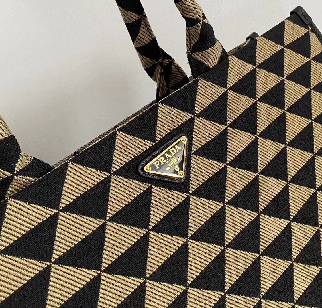 Prada embroidered fabric tote bag