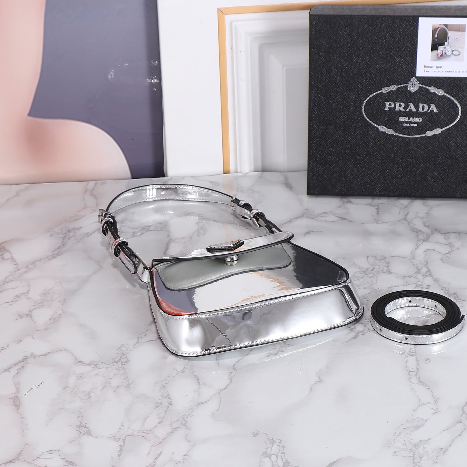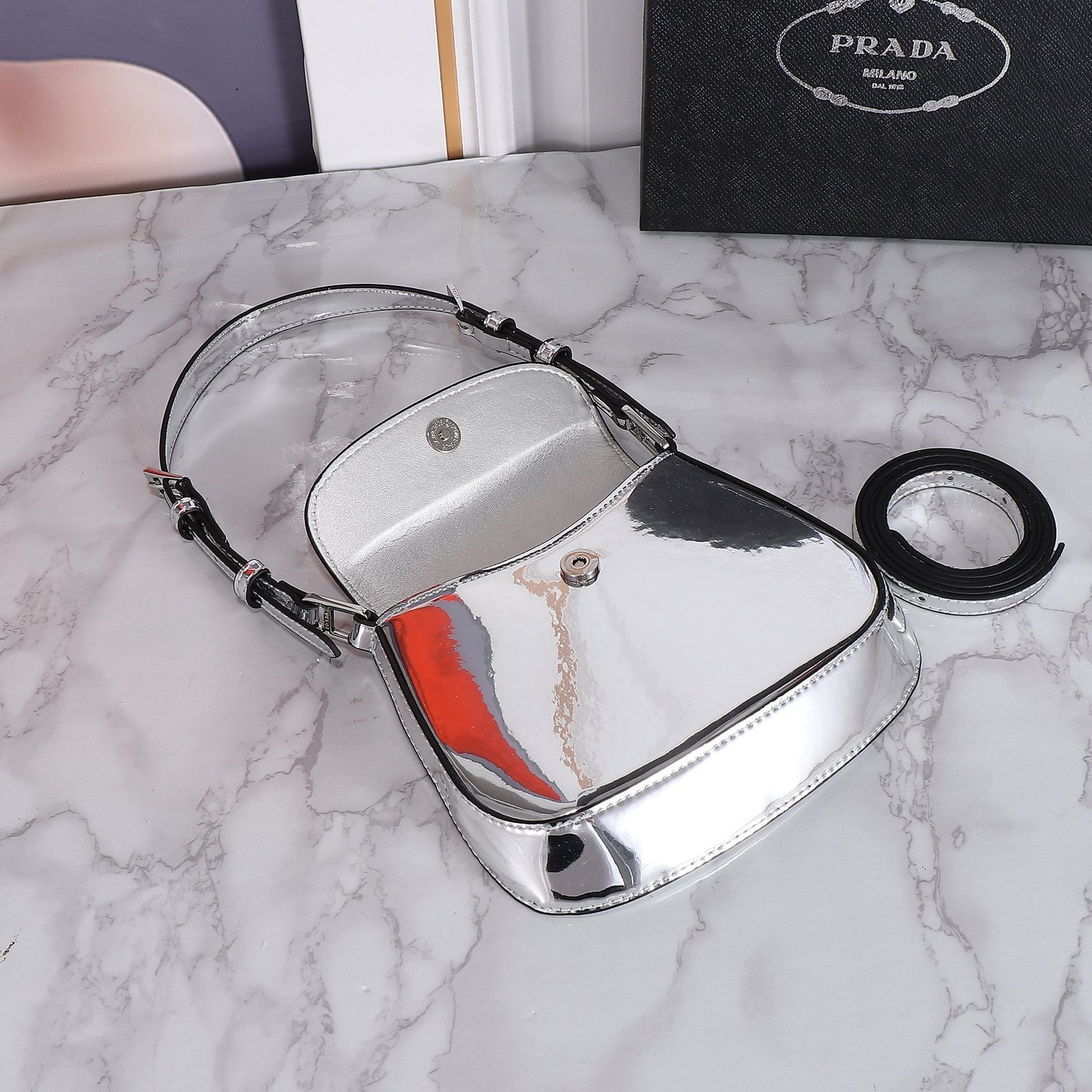 Prada hobo cleo Patent leather 611 sliver size:22*13cm