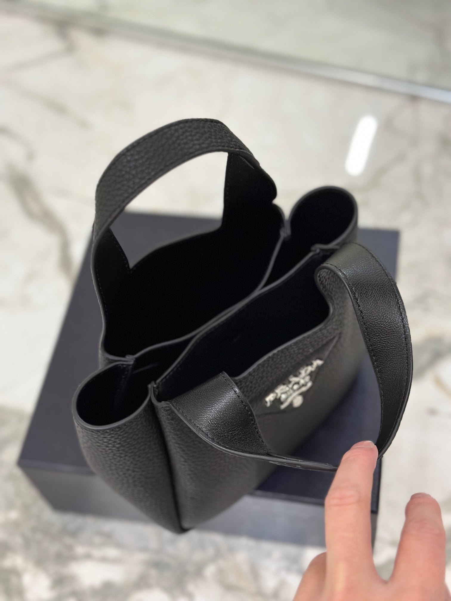Prada Litchi print calf mini Picotin bag size:15.5*18*10cm