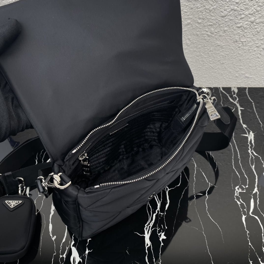 The new large 3-in-1 ????1BD290???????? Prada’s iconic triangular logo is restyled into a stitching pattern for this soft-lined Re-Nylon recycled nylon shoulder bag. The sustainable Re-Nylon recycled nylon material shows the evolution of Prada fabric selection. The mini pouch is attached to the shoulder strap for a modern touch, and the front is decorated with a classic enameled triangle logo for brand touch. ???????? Dimensions: Length 24cmx height 17.5cmx bottom 8.5cm