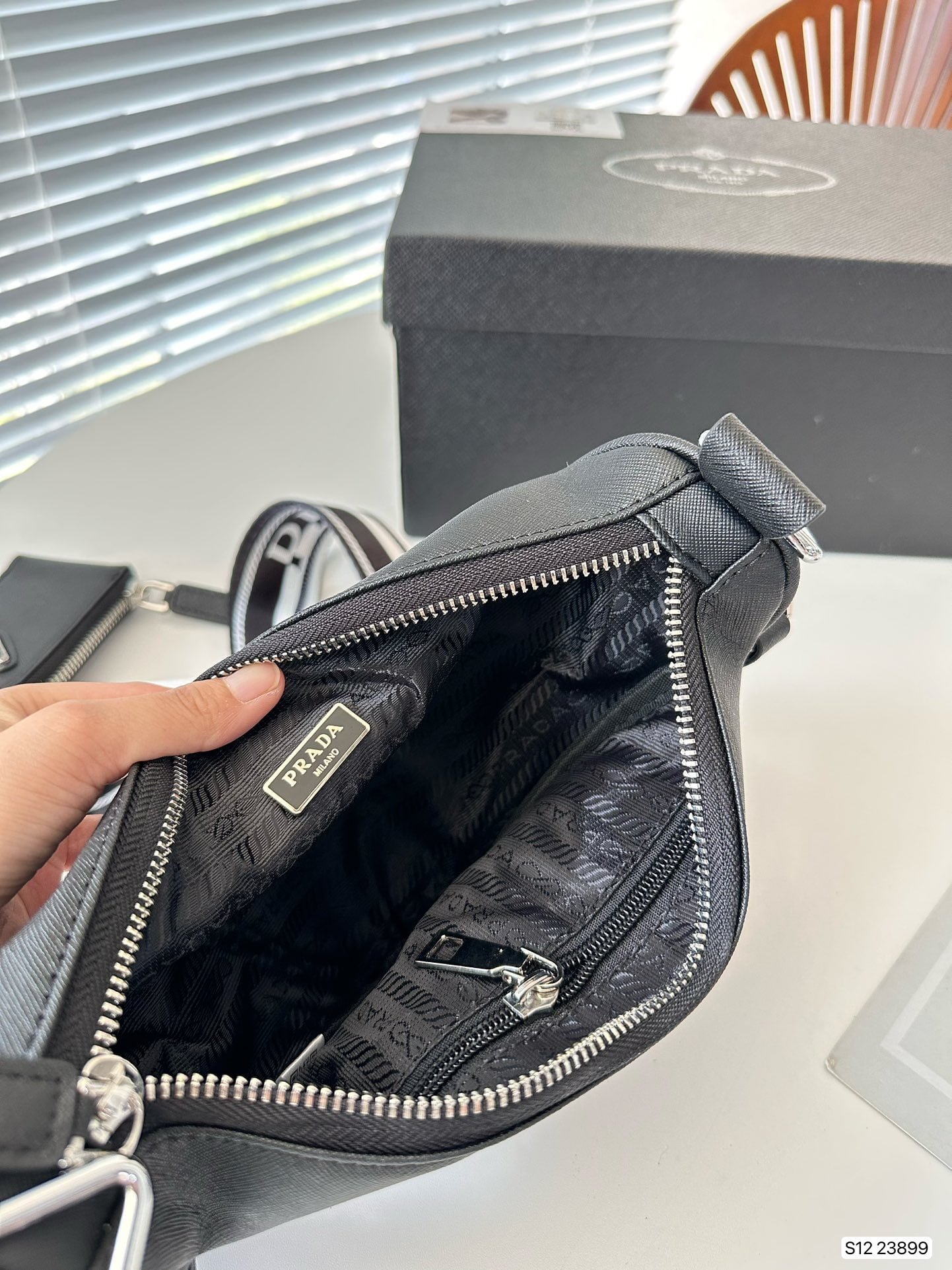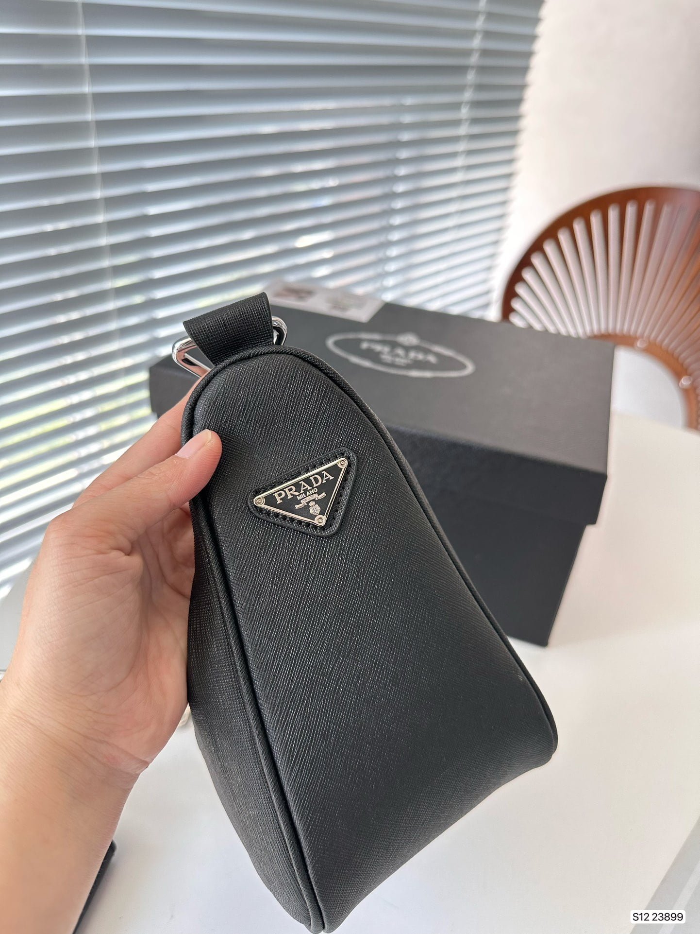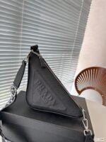 Prada Triangle bag in this series of the most “protagonist” of a bag, I think is the cutest explosive table of the new triangle bag. This time, not only the logo, but also the shape of the handbag is triangular, so simple and special design is very Prada style. It has the appearance level is also creative, daily out of the street and often back bags to do overlap, beautiful and interesting. Size: 28 14 Item number 23899