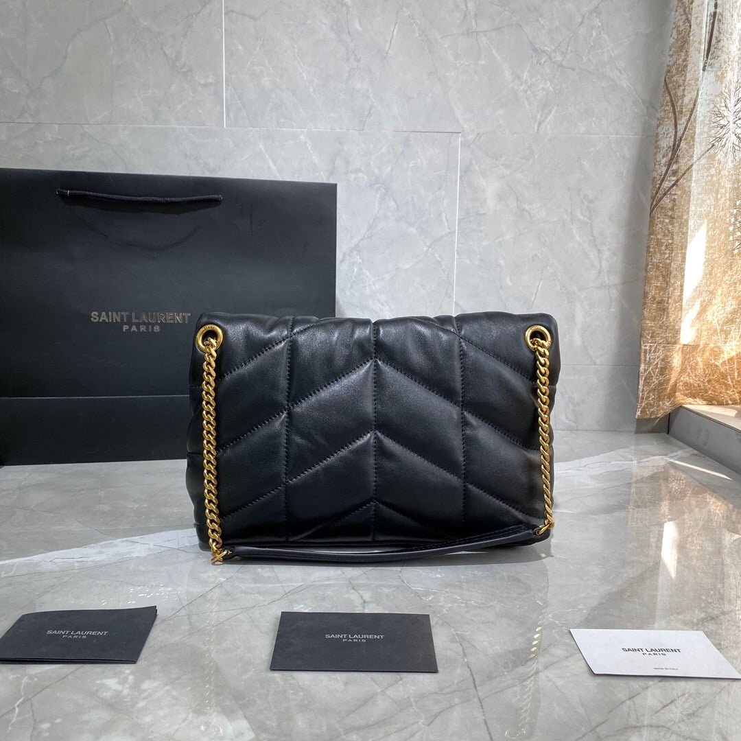 loulou ffer quilted lambskin bag, 100% made of lambskin, feel soft and delicate, like holding clouds ☁️; The classic y logo, chain and button-hole hardware are made of silver brushed metal material, matte fog surface texture and chic. Size: 29x17x11cm Model: 577476