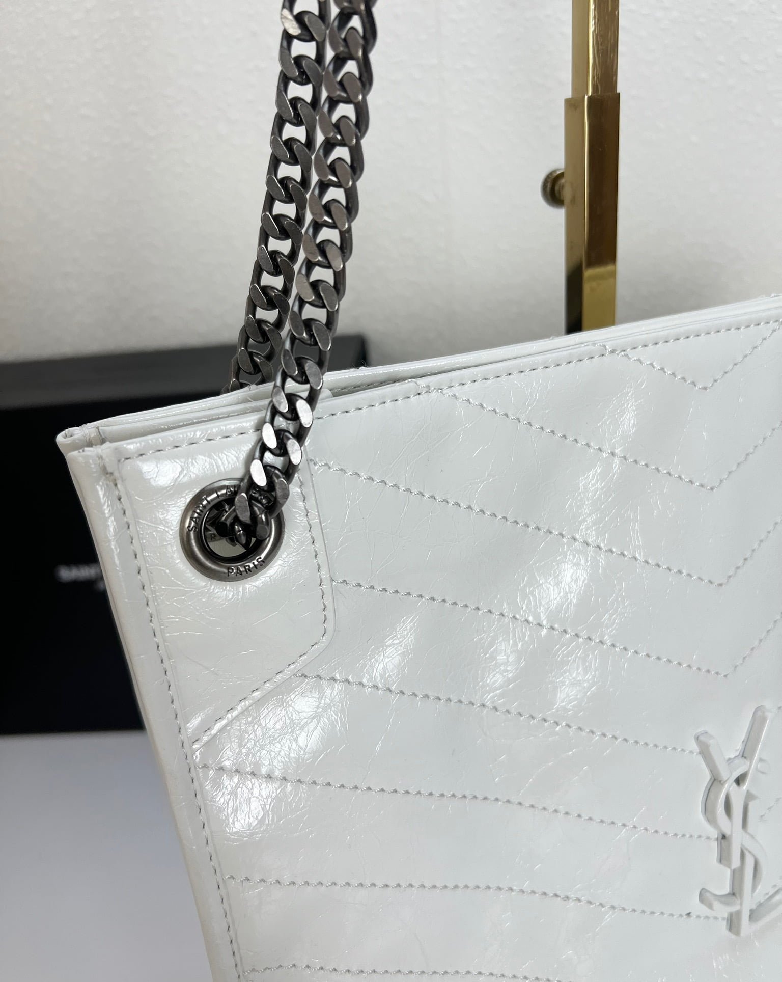 NIKI Shopping Bag Pleated Vintage Oil waxed leather Saint Laurent Tote Bag Upholstered leather-covered YSL initial shoulder Bag 100% calfskin Antique Silver Metal hardware Rolework lining magnetic buckle inside with a zipper pocket