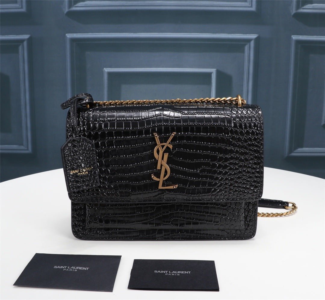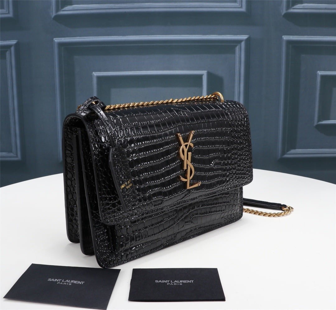 ysl Saint Laurent explosively attack ???????? crocodile pattern. Wang Ziwen’s same saint laurent front clamshell bag, with side accordion ruffles, can be crossbody or folded over the shoulder leather strap, leather outside the key ring buckle metal connection ysl logo. Size: 22.16.8 Model 442906